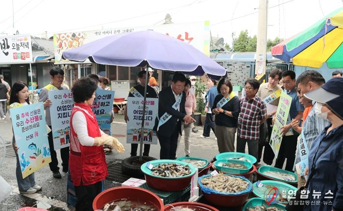 전국연합뉴스 김철환 기자 | 전남 무안군은 지난 16일 일로전통시장에서 수산물의 안전성을 알리고 소비 참여를 확산하기 위해 수산물 소비 촉진 캠페인을 실시했다.