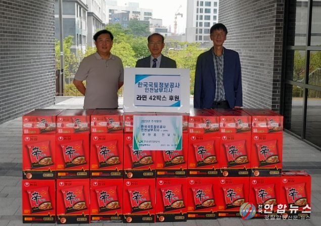 전국연합뉴스 김광원 기자 | 한국국토정보공사 인천남부지사(지사장 김경수)는 지난 19일 추석을 맞아 미추홀구 용현2동 행정복지센터에 어려운 이웃에 전해달라고 라면 42박스를 후원했다.