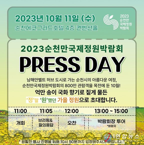 한편, 11일 프레스데이는 2023순천만국제정원박람회 공식 유튜브 채널을 통해 생중계된다.