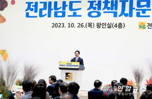 전국연합뉴스 김철환 기자 | 전라남도는 26일 도청 왕인실에서 김영록 지사, 박민서 정책자문위원장을 비롯한 자문위원 200여 명이 참석한 가운데 2023년 정기회의를 열어 국비사업 발굴을 위한 도정 전반의 정책과제를 수렴했다.