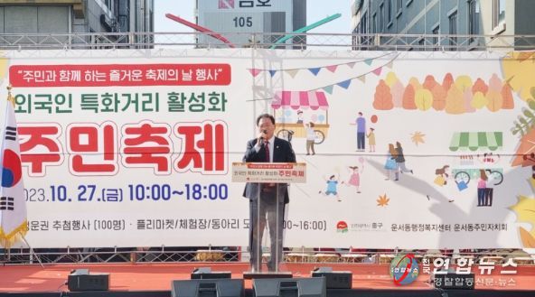 전국연합뉴스 박충곤 기자 | 인천 중구의회는 지난 27일 운서동 외국인 특화거리에서 개최된 ‘외국인 특화거리 활성화 주민축제’에 참석하여 주민과 소통하는 시간을 가졌다.