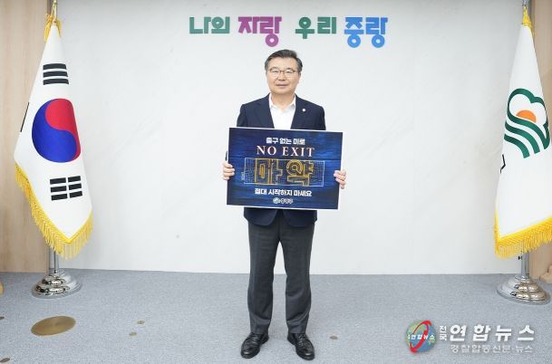 전국연합뉴스 김태연 기자 | 류경기 중랑구청장이 지난 1일 마약 범죄 근절을 위한 ‘노 엑시트(NO EXIT)’ 릴레이 캠페인에 동참했다.