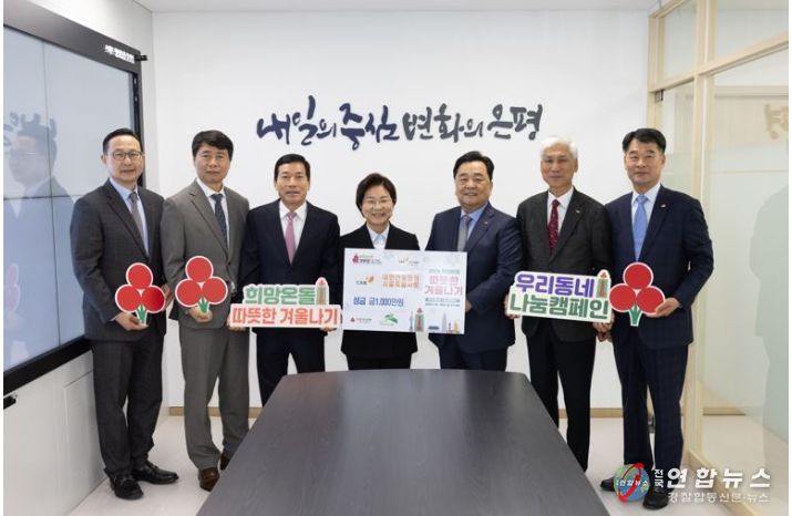 전국연합뉴스 김태연 기자 | 은평구는 지난 21일 대한건설협회 서울특별시회와 따뜻한 겨울나기 사랑의 이웃돕기 성금 전달식을 가졌다고 밝혔다.