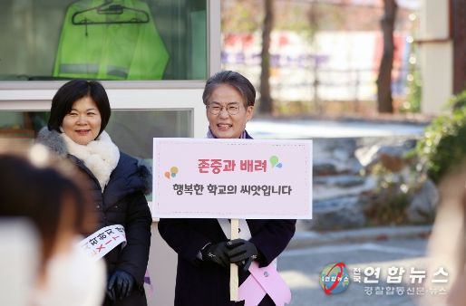 이 자리에서 송 의장은 ‘존중과 배려, 행복한 학교의 씨앗입니다’라는 응원 메시지가 담긴 피켓을 들고 등교하는 학생, 교사들과 인사하며 캠페인 취지를 설명하는 등 교권 존중과 회복을 위해 앞장섰다.