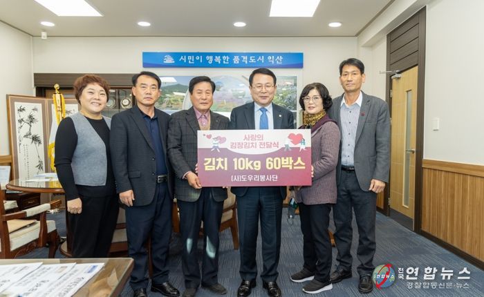 전국연합뉴스 최성용 기자 | (사)도우리봉사단은 지난 4일 익산시청을 방문해 김장김치10kg 60박스를 기탁했다.