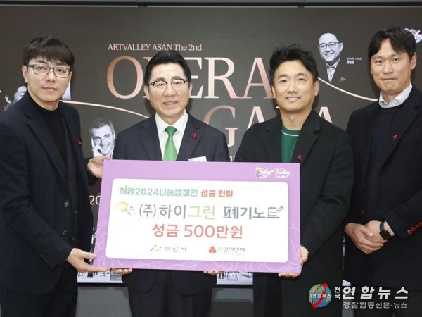 전국연합뉴스 김용태 기자 | 아산시는 지난 13일 ㈜하이그린&폐기노트로부터 ‘희망 2024 나눔 캠페인’ 이웃사랑 성금 500만 원을 전달받았다고 밝혔다.