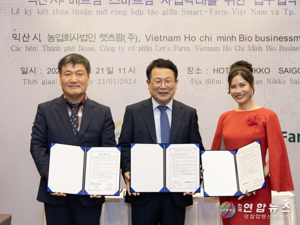 22일 익산시에 따르면 정헌율 익산시장은 전날 베트남 호치민에서 현지 기업들과 스마트팜 사업 확대를 위한 업무협약을 체결했다.