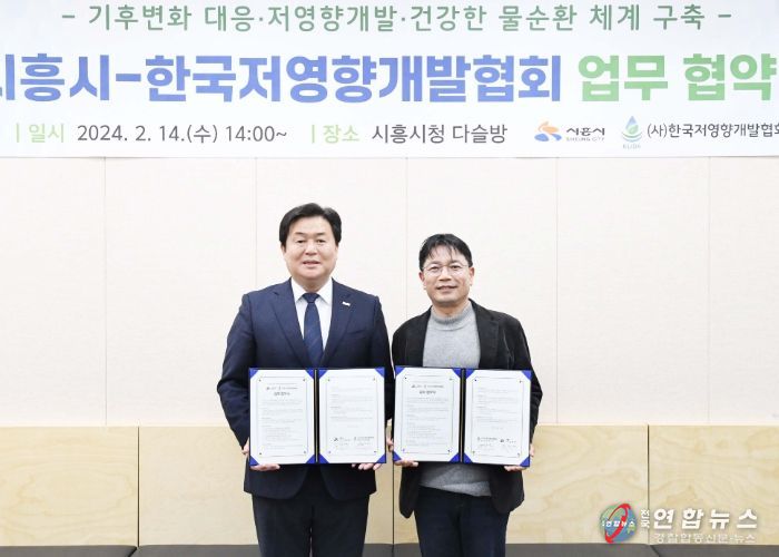 전국연합뉴스 이명후 기자 | 시흥시는 14일 시청 다슬방에서 환경부 소관 비영리법인인 ‘한국저영향개발협회’와 지속 가능한 물순환 체계 구축을 위한 업무협약을 체결했다.