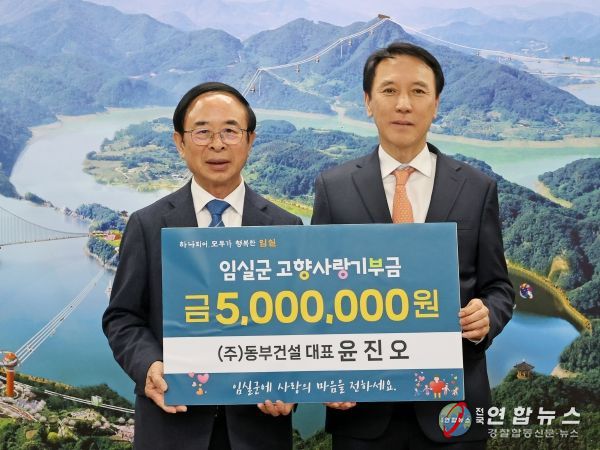 전국연합뉴스 최성용 기자 | ㈜동부건설 윤진오 대표가 지난 6일 고향사랑기부금 최고 금액인 5백만원을 임실군에 기탁했다.