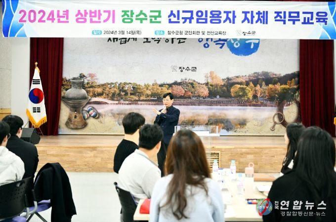 전국연합뉴스 최성용 기자 | 장수군은 14일 군민회관에서 신규공직자의 공직사회 적응력 향상 및 직무역량 강화를 위한 ‘신규임용자 자체 직무교육’을 실시했다.