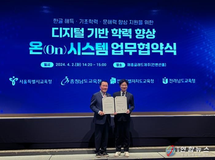 전국연합뉴스 기자 | 전라남도교육청과 충청남도교육청이 4월 2일 제주 메종글래드 호텔에서 학생들의 기초·기본학력을 보장하고, 학습 결손을 해결하기 위한 ‘온시스템’ 업무협약을 체결했다.