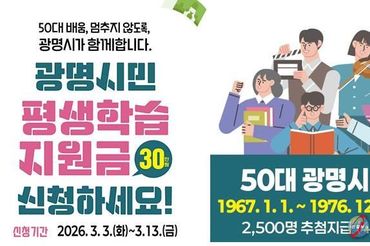 광명시, 50대 시민 '배움 기본권' 넓힌다...3월 3~13일 평생학습지원금 신청… 1인당 30만 원 지원
