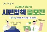 아산시, '2026년 시민 정책 공모전 개최'…시민의 생각이 아산의 미래가 된다