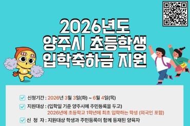 양주시, ‘초등학교 입학축하금’ 20만 원 지원