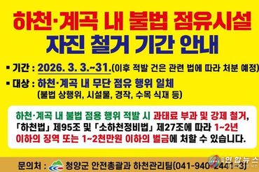 청양군, 하천 불법 점유물 일제 정비… “공공성 회복·재해 예방 총력”