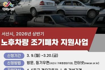서산시, 2026년 노후차량 조기폐차 지원사업 추진