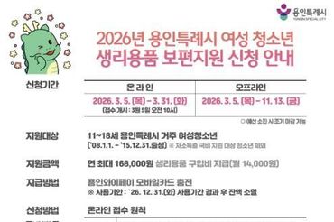 용인특례시, 여성 청소년 생리용품 보편지원사업 신청 접수