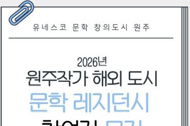 원주시, ‘원주작가 해외 도시 문학 레지던시’ 참여 작가 모집