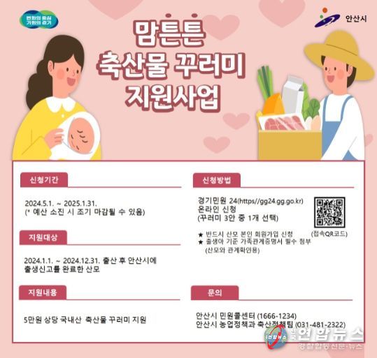 전국연합뉴스 이명후 기자 | 안산시가 올해 출산한 산모의 건강 회복과 고물가에 위축된 축산물의 소비 촉진을 위해 ‘축산물 꾸러미’를 지원한다.