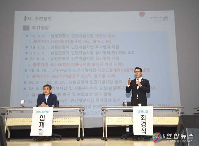 전국연합뉴스 최성용 기자 | 남원시가 남원관광지 민간개발사업 관련 손해배상 소송이 진행되고 있는 가운데 25일 공청회를 개최했다.