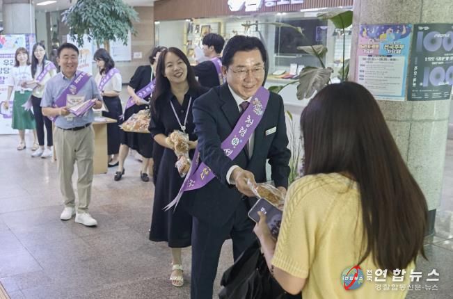 전국연합뉴스 김용태 기자 | 아산시가 지난 10일 추석 명절을 앞두고 시청 본관 1층 로비에서 조직 내 공직윤리 확립과 청렴문화 확산을 위한 ‘명절선물 안주고 안받기’ 추석 명절 청렴캠페인을 실시했다.
