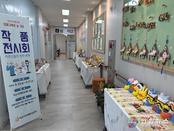 치매안심센터 안에서는 치매 노인과 가족들이 치매 쉼터와 헤아림 등 지원프로그램에 참여해 만든 교구로 작품전시회를 열었다.