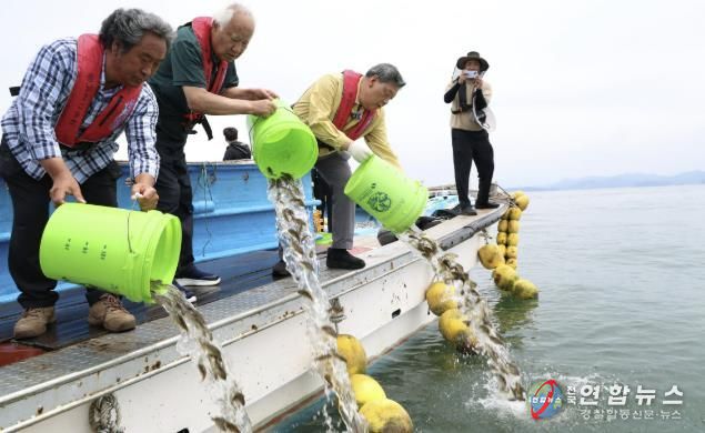 전국연합뉴스 김영대 기자 | 태안군이 천수만 해역의 수온 상승으로 인한 양식어류 폐사에 선제 대응하기 위해 양식어류 긴급 방류에 나섰다.