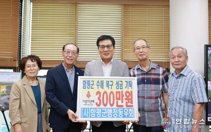 함평군은 19일 “(사)함평군행정동우회가 전날 집중호우 피해지역의 조속한 복구와 군민 생활 안정을 위해 회원들이 직접 모금한 성금 300만 원을 기탁했다”고 밝혔다.