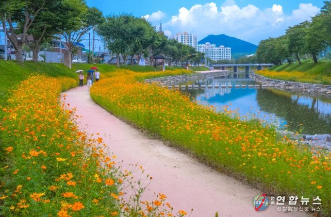 전국연합뉴스 최성용 기자 | 순창군이 지난 5월 양지천 산책로 일원에 식재한 황화코스모스와 버들마편초가 화사하게 물들며 방문객들의 발길을 끌고 있다. 오는 9월 초에는 만개해 절정의 아름다움을 선보일 전망이다.