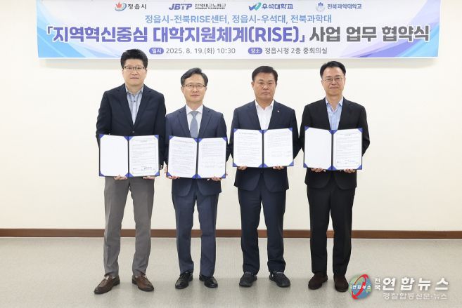 전국연합뉴스 최성용 기자 | 정읍시가 전북RISE센터, 우석대학교, 전북과학대학교와 손잡고 지역혁신중심 대학지원체계사업(RISE)을 본격 추진한다.