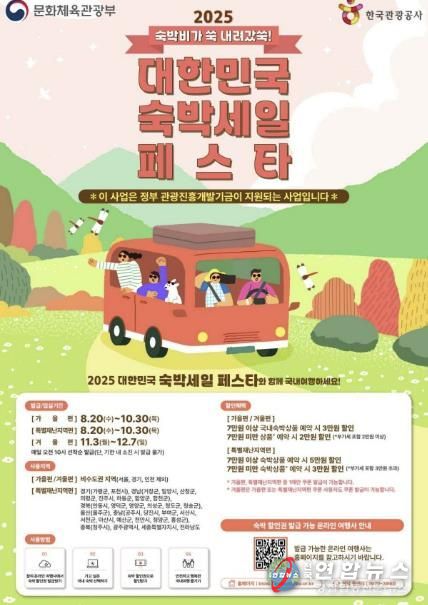전국연합뉴스 김용태 기자 | 부여군은 문화체육관광부와 한국관광공사가 추진하는 ‘2025년 하반기 대한민국 숙박세일 페스타’에서 부여를 찾는 관광객들에게 최대 5만 원의 숙박 할인 혜택이 제공된다고 밝혔다.