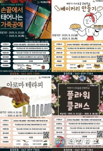 익산시는 청년시청에서 오는 22일부터 28일까지 하반기 '다이로움 문화학교' 수강생 40명을 모집한다고 21일 밝혔다.