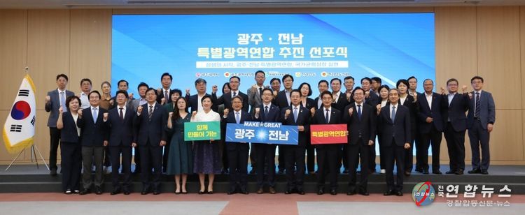나주시청 대회의실에서 열린 ‘광주·전남 특별광역연합 추진 선포식’에는 김경수 지방시대위원장, 강기정 광주시장, 김영록 전남도지사, 윤병태 나주시장 등이 참석했다.