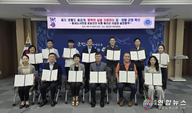 전국연합뉴스 김용태 기자 | 예산군은 군청 대회의실에서 충남 노사민정 공동선언의 구체적 이행을 위한 실천 협약을 체결하고 일과 생활의 균형 확산을 위해 힘을 모으기로 결의했다고 1일 밝혔다.