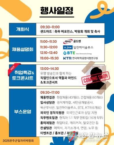 전국연합뉴스 최성용 기자 | 완주군이 오는 4일 우석대학교 체육관에서 ‘2025 완주군 일자리박람회’를 개최한다.