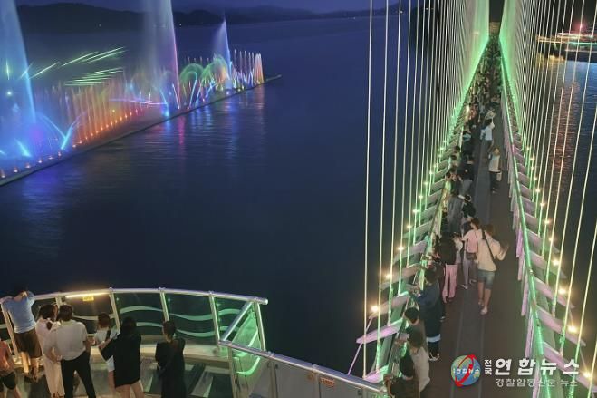 전국연합뉴스 김용태 기자 | 예산군의 대표 관광 명소인 예당호 출렁다리와 음악분수가 올여름 한층 업그레이드된 무대로 방문객을 맞이하고 있다.