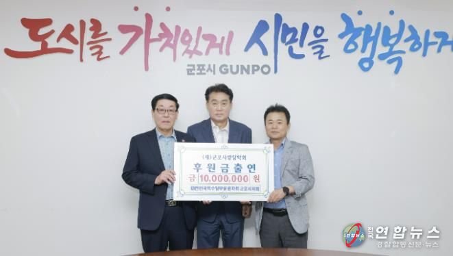 전국연합뉴스 김홍진 기자 | 대한민국특수임무유공자회 군포시지회가 8일 군포시청 시장실에서 1천만 원의 장학기금을 (재)군포사랑장학회에 기부하는 장학금 출연식을 가졌다.