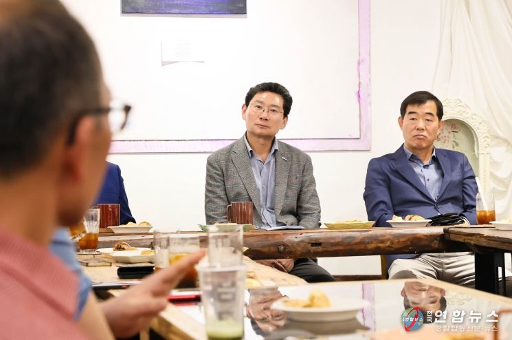 전국연합뉴스 박남호 기자 | 이상일 용인특례시장은 23일 오후 처인구 전통시장과 골목형상점가 관계자들과 만나 대화하는 ‘찾아가는 차(茶)담회’를 시 관계자들과 함께 1시간 30분가량 진행했다.