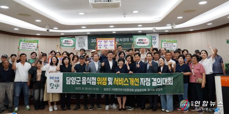전국연합뉴스 김철환 기자 | 담양군은 24일 농업기술센터 강당에서 외식업 종사자 100여 명과 함께 ‘친절 실천 및 서비스 개선 자정 결의대회’를 열고 불친절·비위생 문제 예방과 관광 이미지 개선을 다짐했다.