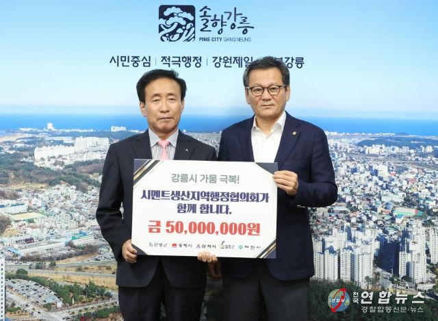 전국연합뉴스 김생수 기자 | 시멘트 생산지역 행정협의회(회장 단양군수)는 지난 25일 유례없는 가뭄을 겪었던 강릉시에 성금 5,000만 원을 기탁했다.