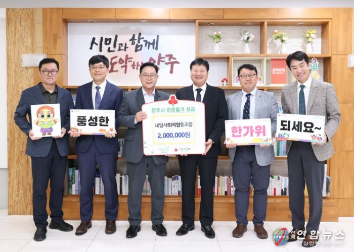전국연합뉴스 박점규 기자 | 양주시가 지난 30일 내일사회적협동조합(이사장 송영진)로부터 성금 200만원을 기탁받았다.
