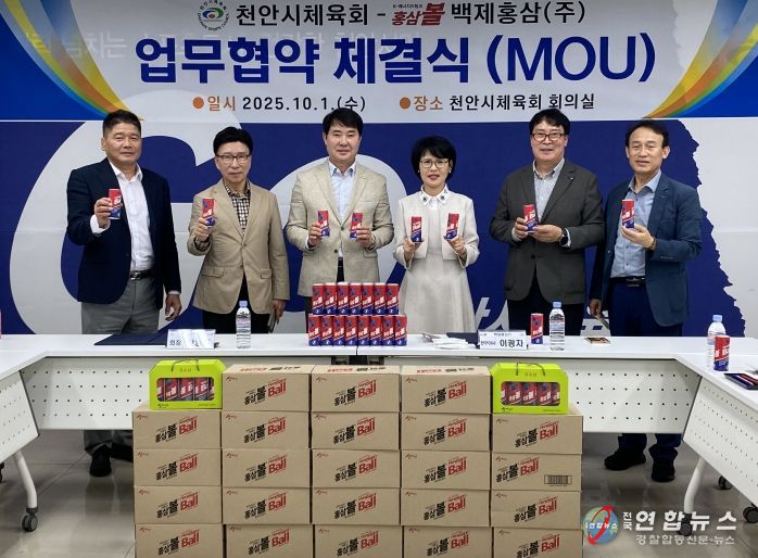 전국연합뉴스 김대환 기자 | 천안시체육회는 지난 1일 백제홍삼㈜와 체육인 건강증진을 위해 업무협약을 체결했다고 밝혔다.