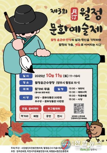 행사 관계자는 “양주 월정 문화예술제는 단순한 행사를 넘어 시민들이 지역의 역사와 문화를 체감하고 자긍심을 가질 수 있는 소중한 기회”라며, “많은 시민들이 함께해 가을 정취 속에서 문화와 예술을 즐기시길 바란다”고 전했다.
