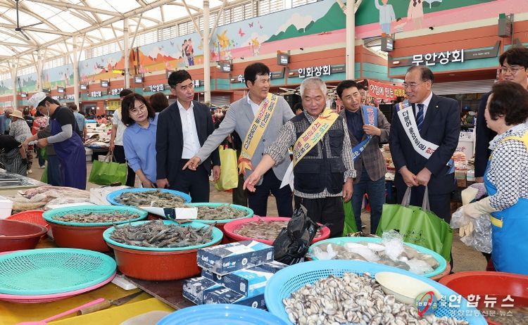 전국연합뉴스 김철환 기자 | 전남 함평군이 추석 명절을 맞아 전통시장 소비 촉진을 위해 함평천지전통시장에서 장보기 행사를 개최했다.