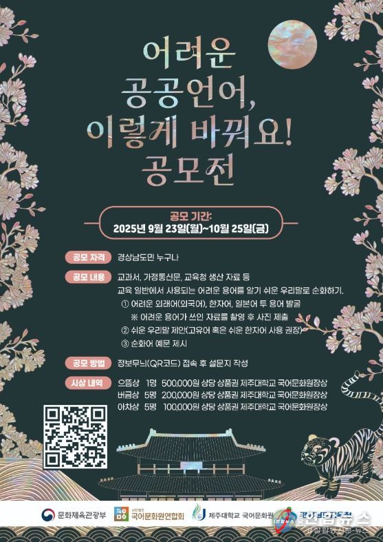 전국연합뉴스 기자 | 경상남도교육청과 제주대학교 국어문화원(원장 배영환)이 교육 현장에서 사용되는 어려운 공공언어를 쉽고 바른 우리말로 바꾸기 위한 ‘어려운 공공언어, 이렇게 바꿔요!’ 공모전을 오는 25일까지 개최한다.
