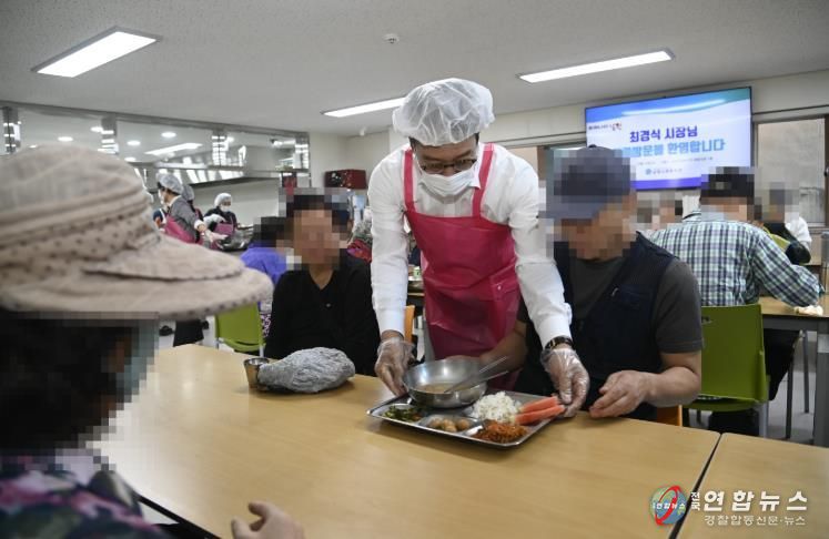 전국연합뉴스 최성용 기자 | 최경식 남원시장이 지난 10일 기능보강이 완료된 남원사회복지관 경로식당을 방문해 배식 봉사를 진행하며 어르신들과 소통하는 시간을 보냈다.