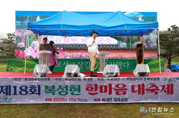 전국연합뉴스 김철환 기자 | 보성군은 지난 3일 복내면 체육공원에서 열린 ‘제18회 복성현 한마음대축제’가 지역민과 출향 향우, 관광객 등 1,000여 명이 참여한 가운데 성황리에 마무리됐다고 밝혔다.
