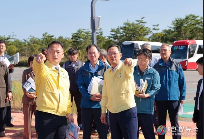 명현관 군수는 10일 대회기간 임시주차장이 운영될 산이면 구성리 솔라시도기업도시에서 현장 보고회를 갖고, 대회 준비 사항을 점검했다.