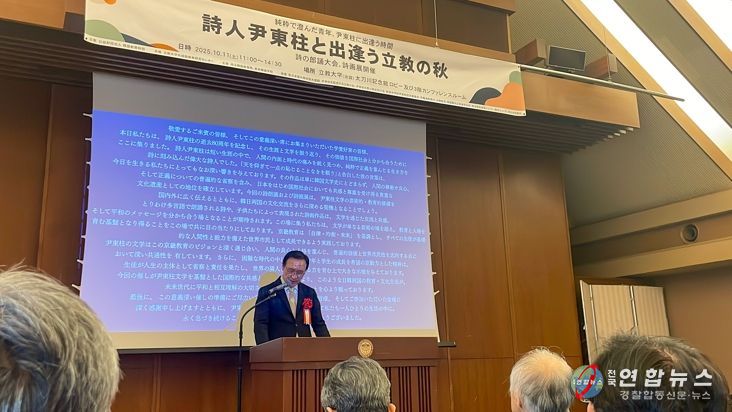 전국연합뉴스 기자 | 임태희 경기도교육감이 11일 일본 도쿄 릿쿄대학에서 열린 ‘윤동주 시인 서거 80주년 기념 시낭송 대회 및 기념비 제막식’에 참석했다.