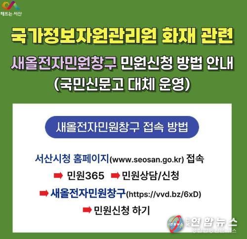 전국연합뉴스 김용태 기자 | 충남 서산시가 국민신문고 서비스의 일시 중단에 따른 시민 불편 최소화에 나섰다.